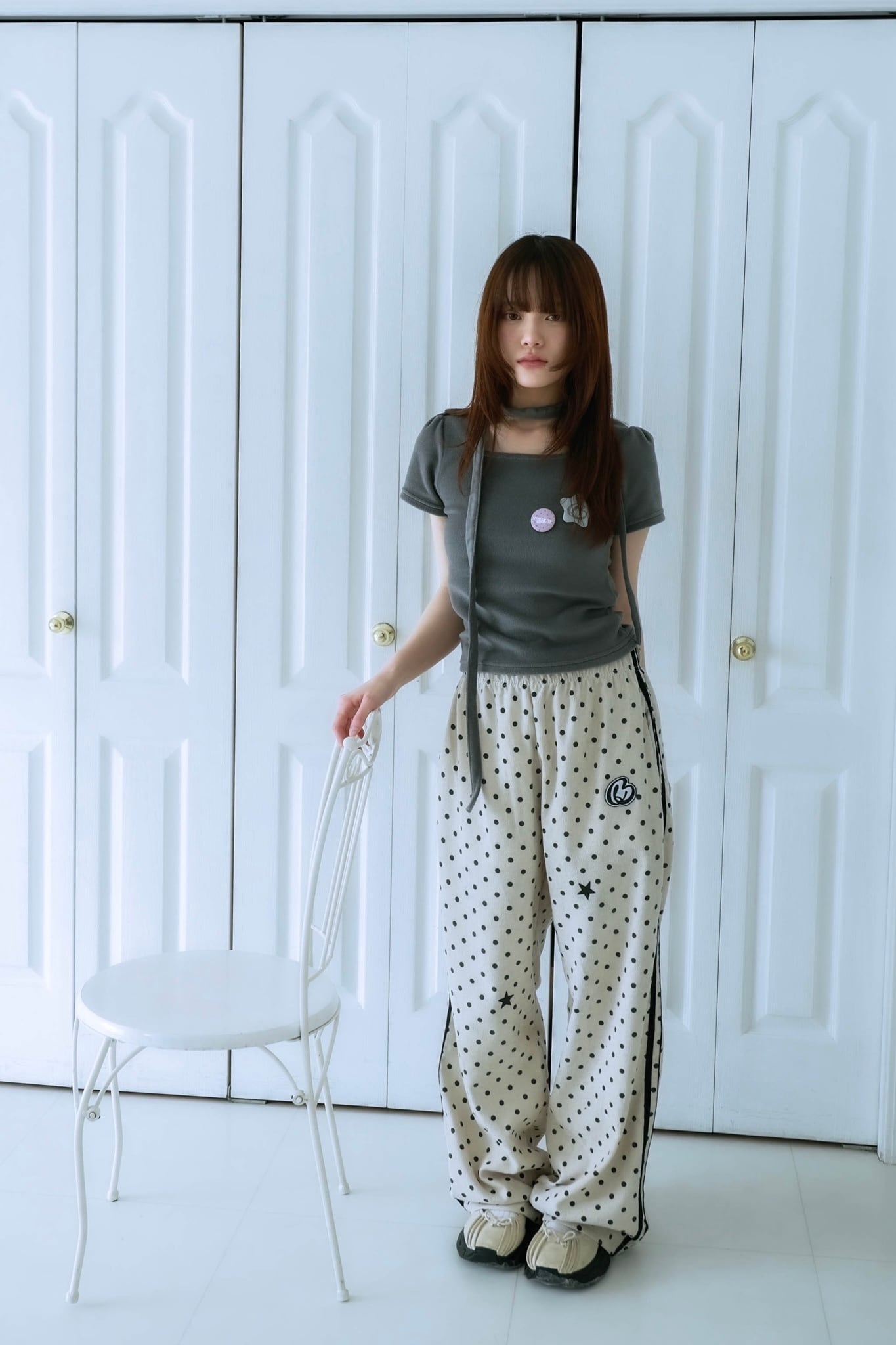 ドット柄とオリジナルロゴワッペンが特徴のdot patch pants●。.·