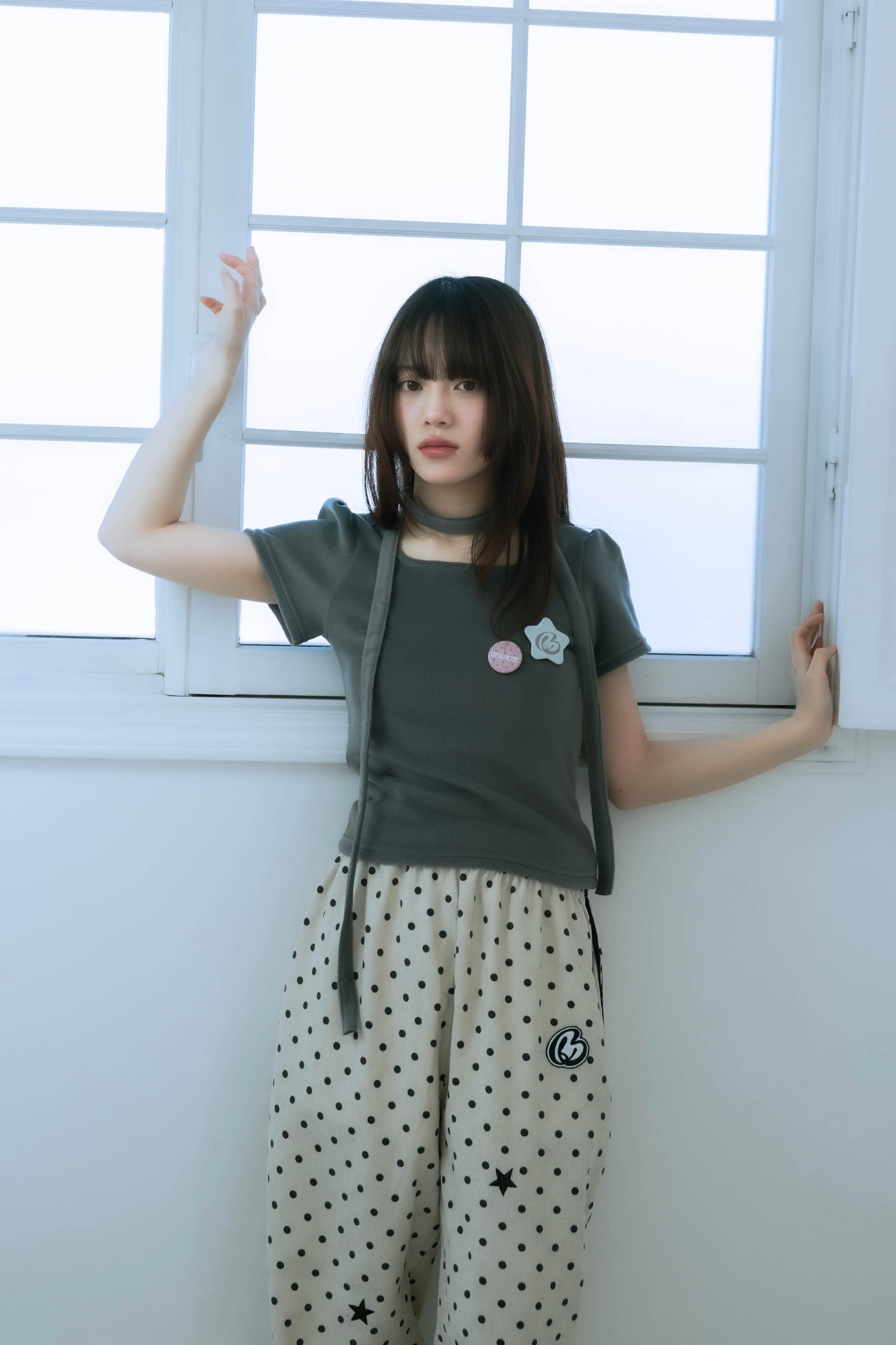 缶バッジは付け外しでき、単体で使って致くのも可愛くチョーカーを外したりして色々な着回しが可能なトップスです♬