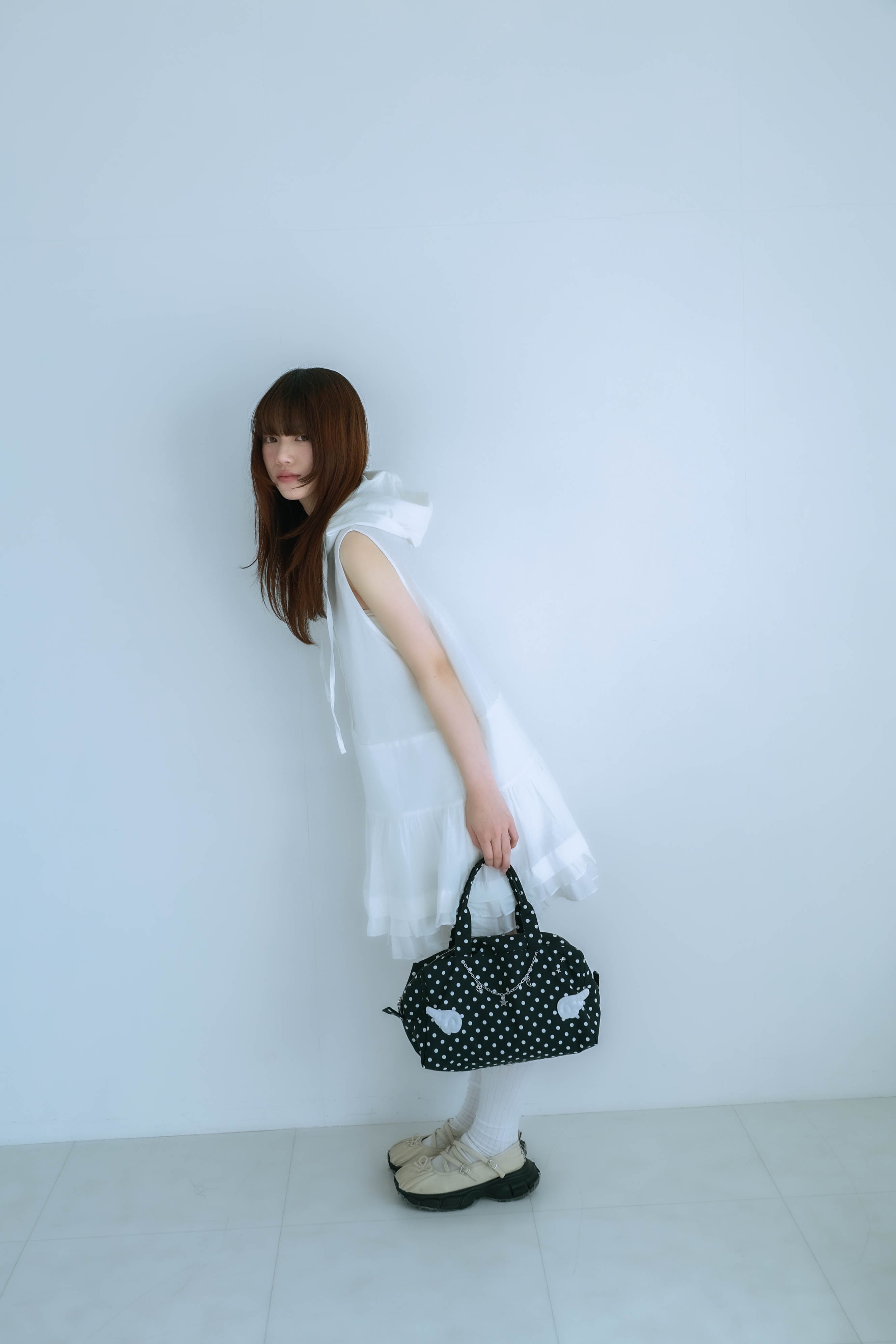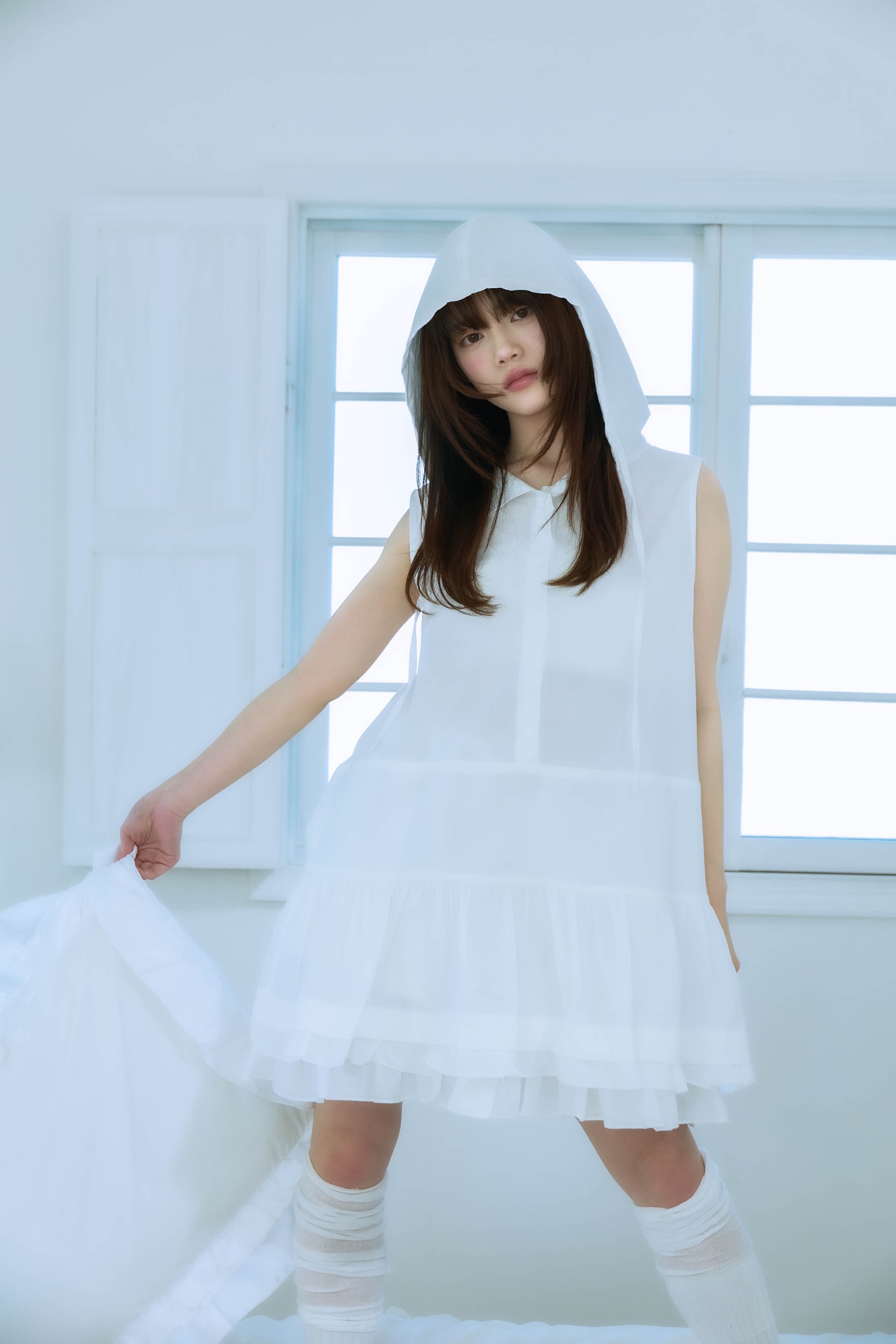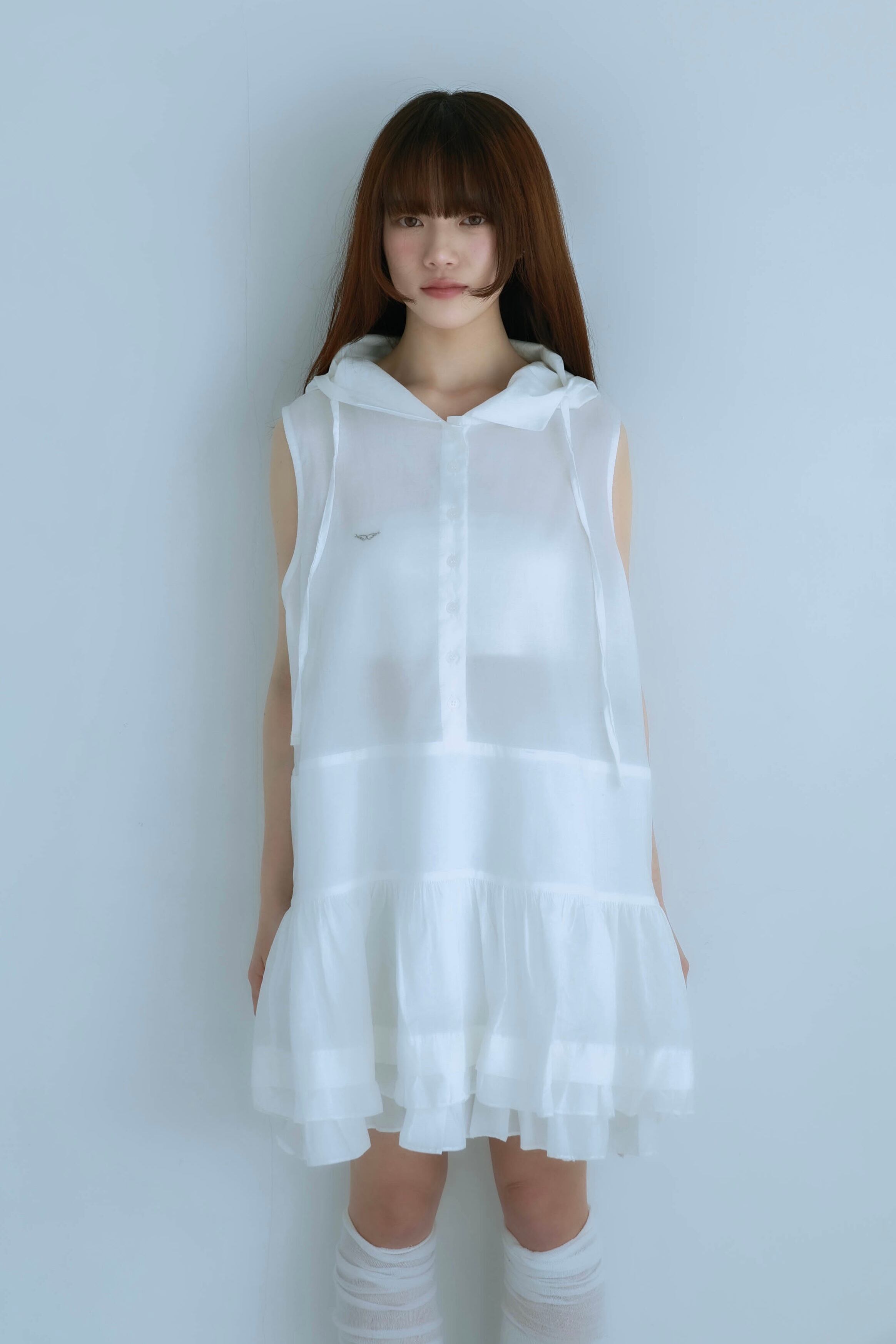 胸元に光るシルバーの羽がかわいいまるで天使のような儚さを演出するフーディーワンピースです⟡.·