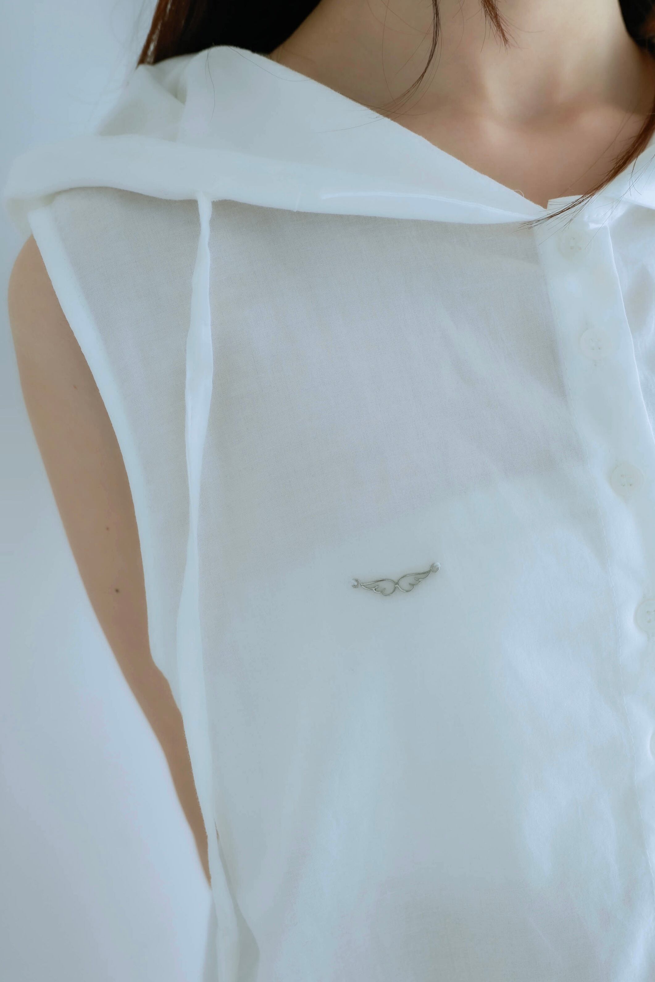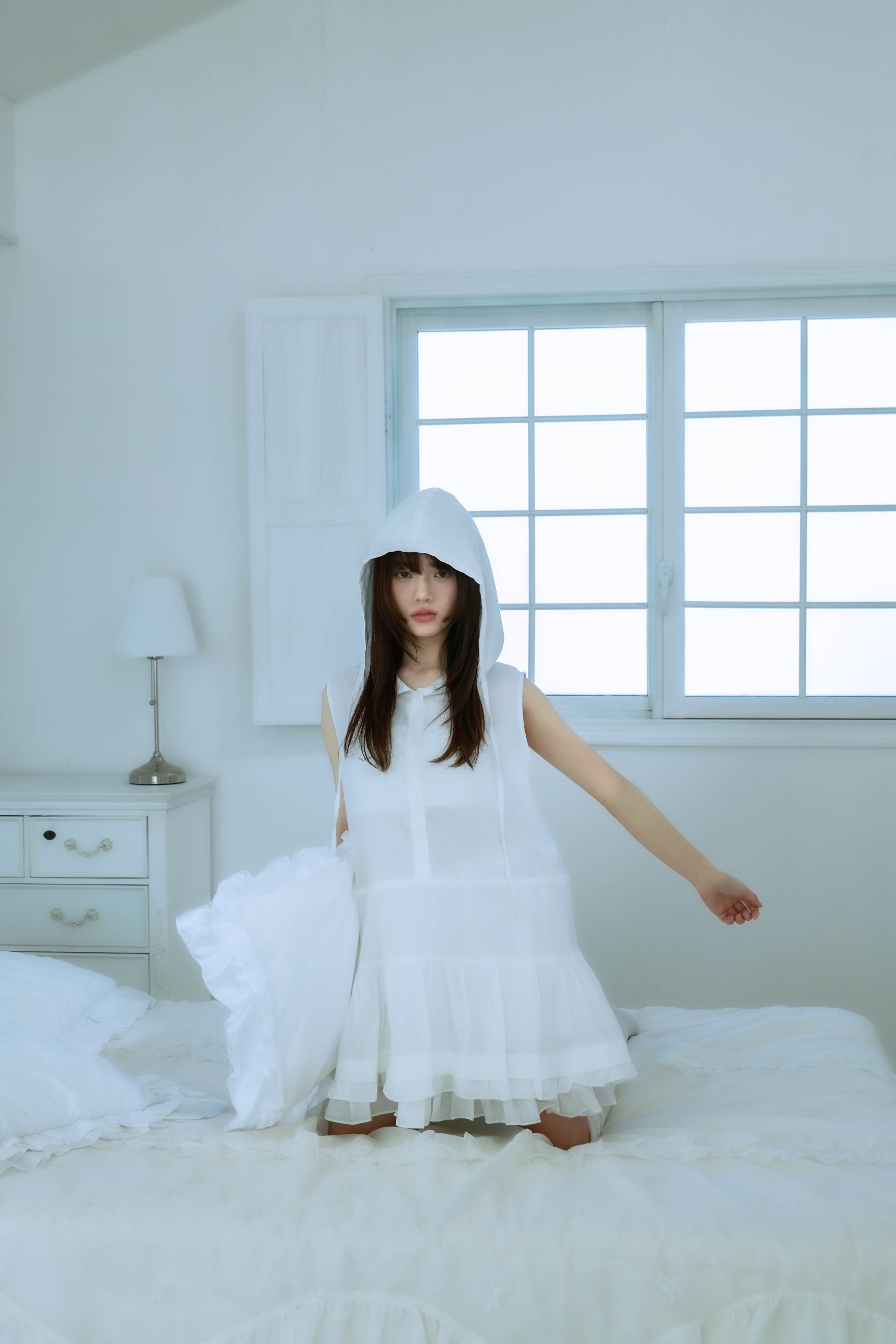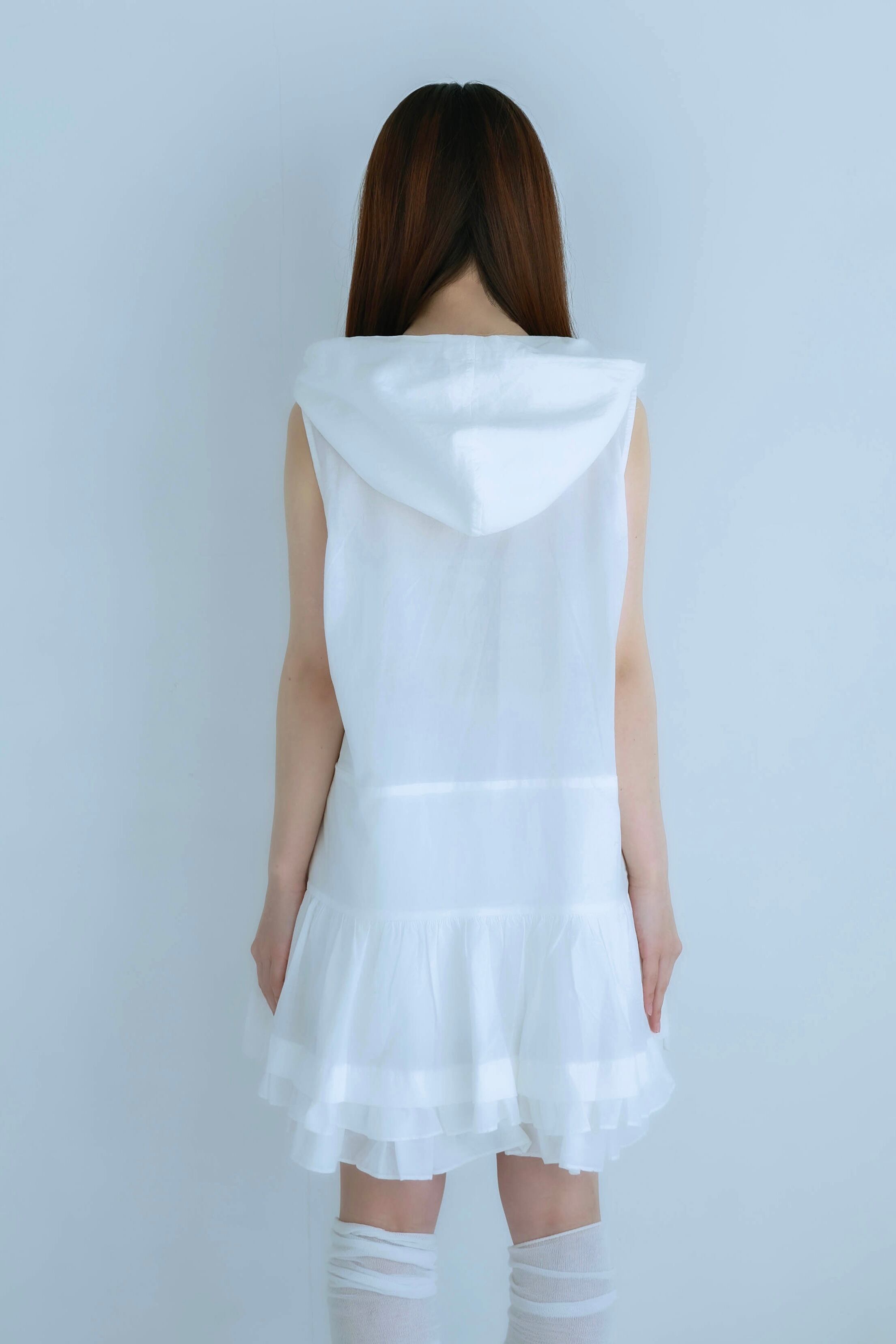 胸元に光るシルバーの羽がかわいいまるで天使のような儚さを演出するフーディーワンピースです⟡.·