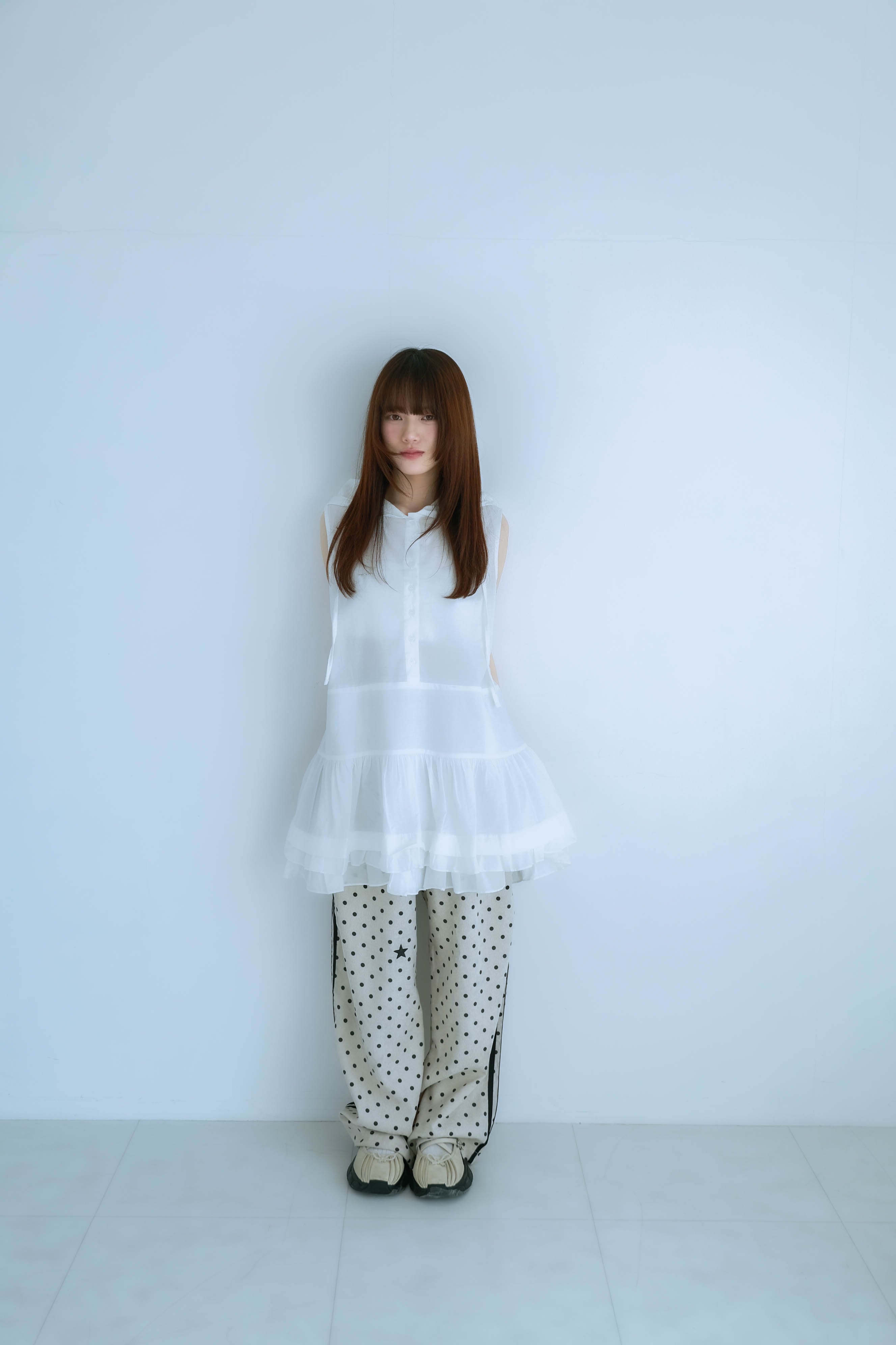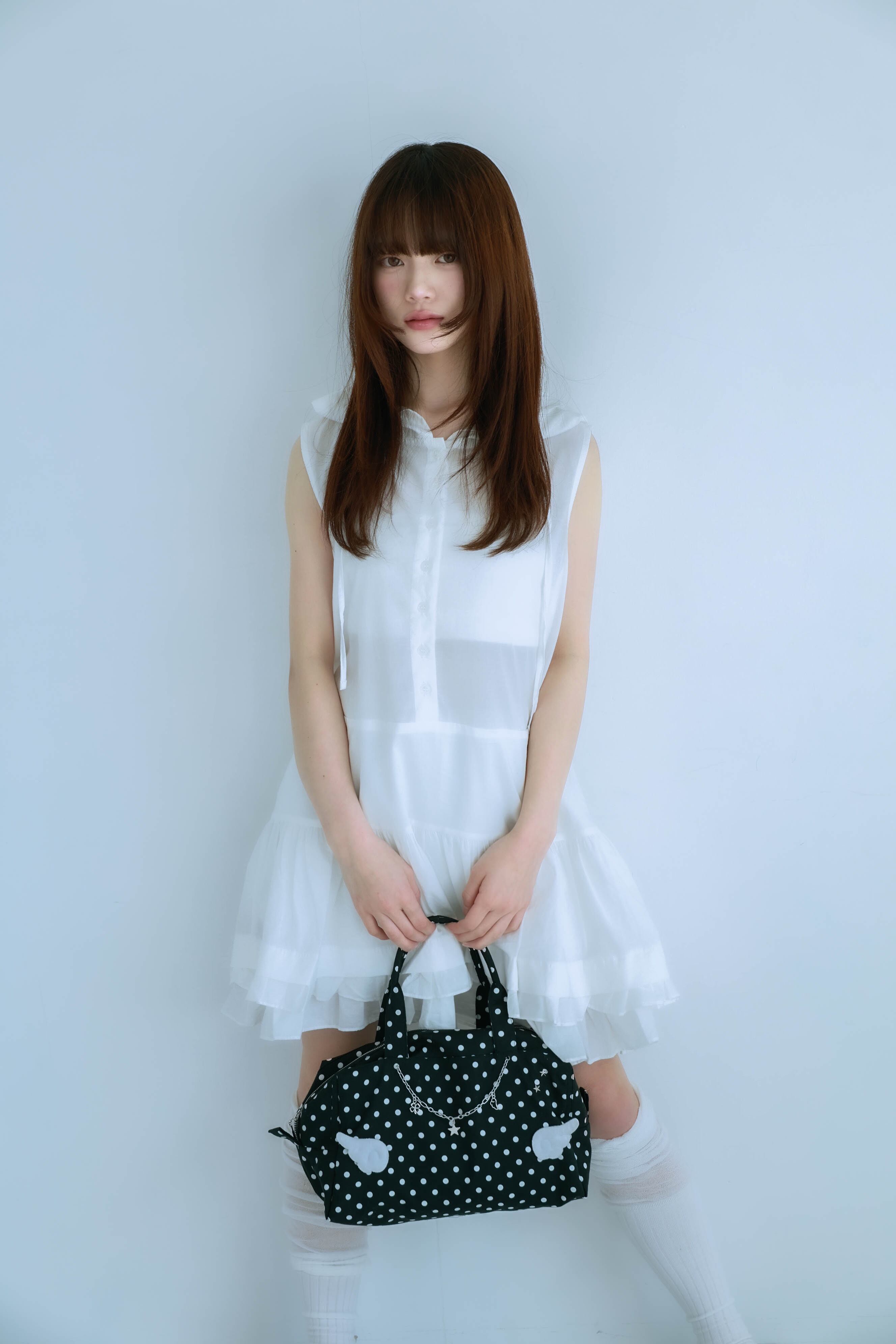 1枚で着るのもとても可愛い1着ですが、前釦を開けてTシャツやシアーインナーと合わせたり、下にパンツを履いたりしてレイヤードスタイルも楽しめる1枚です♬