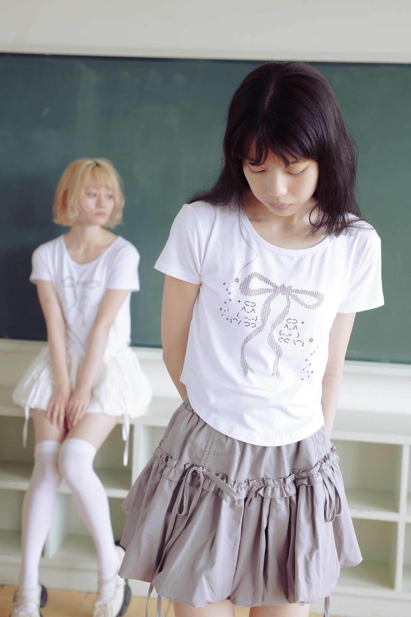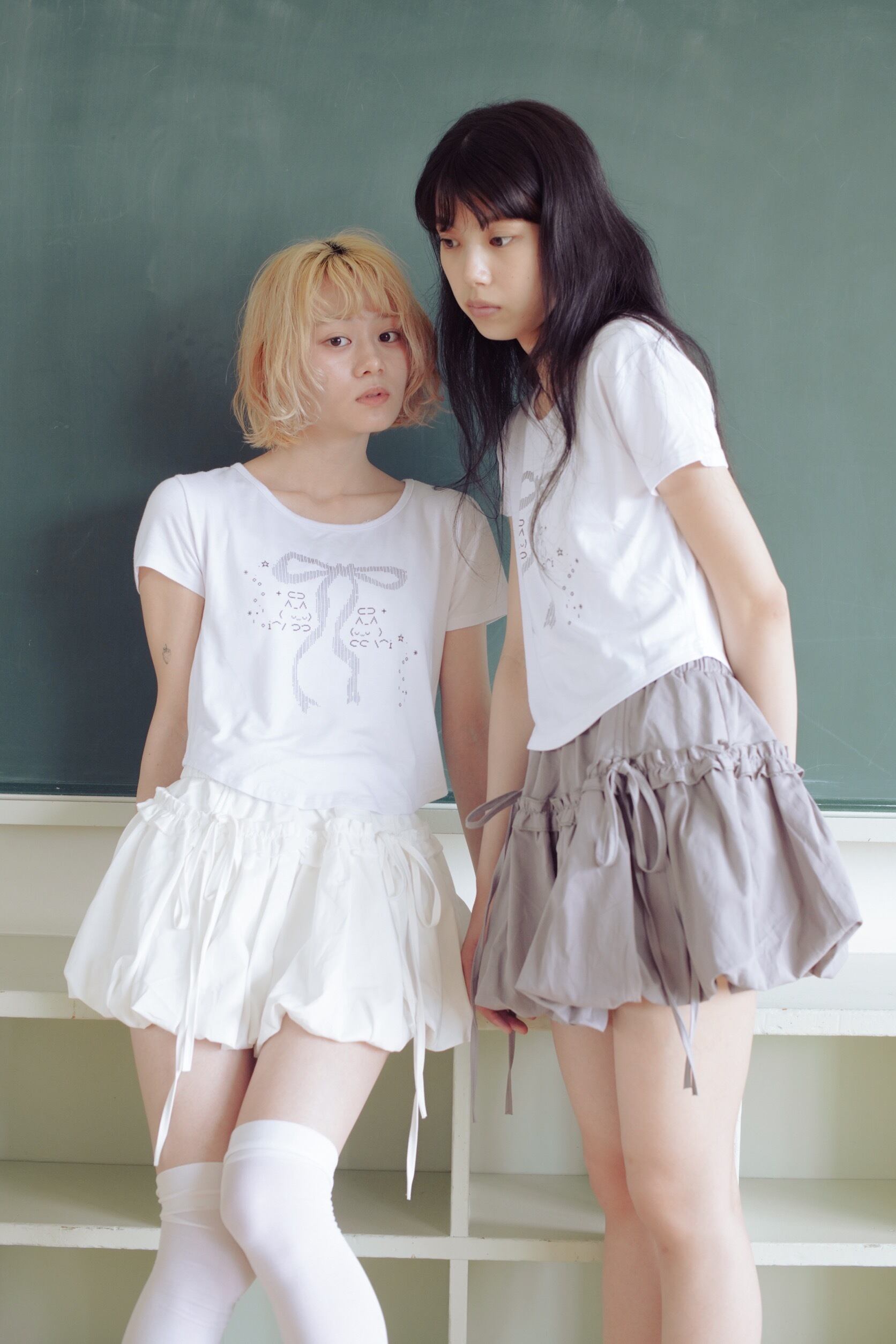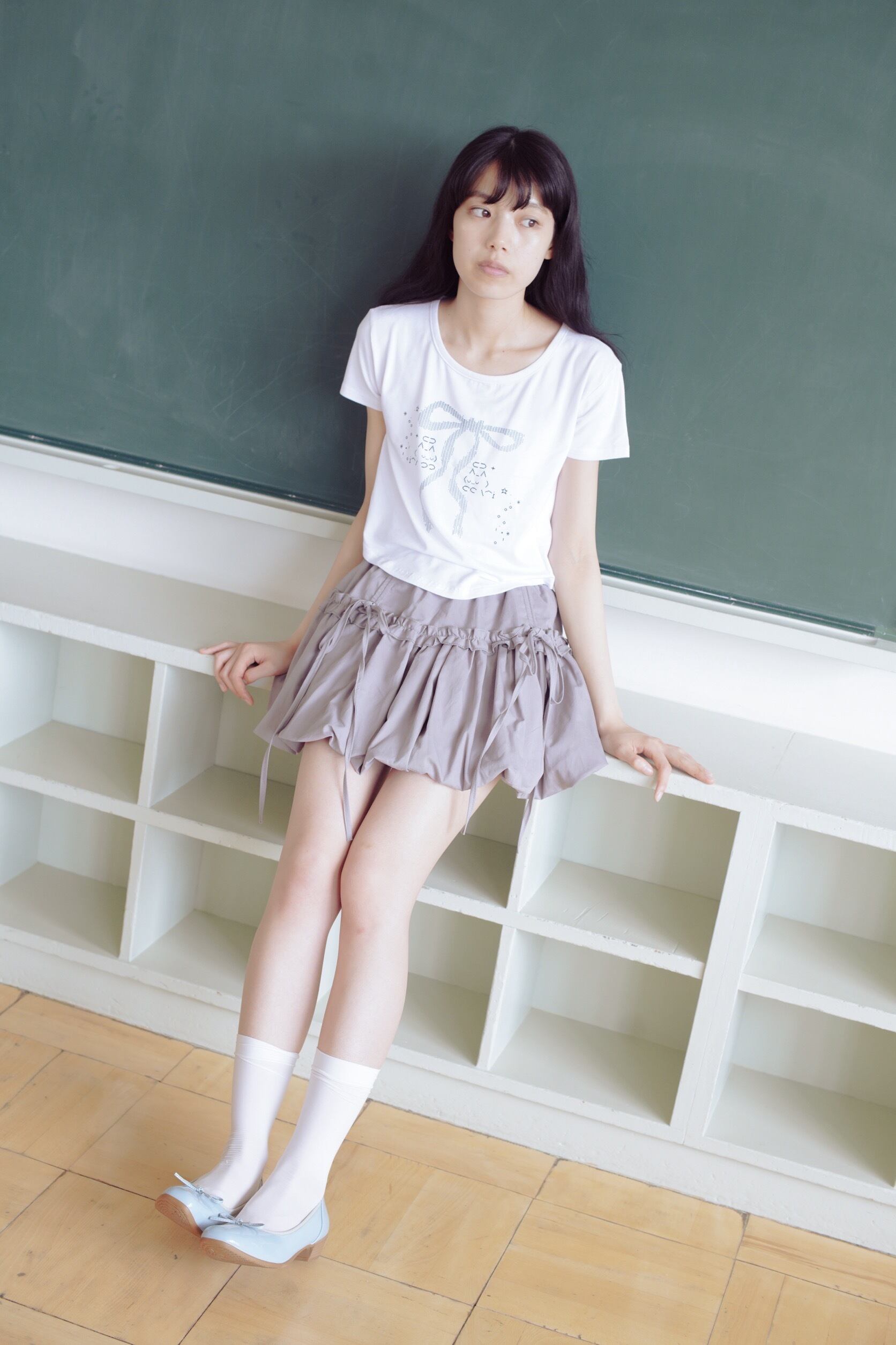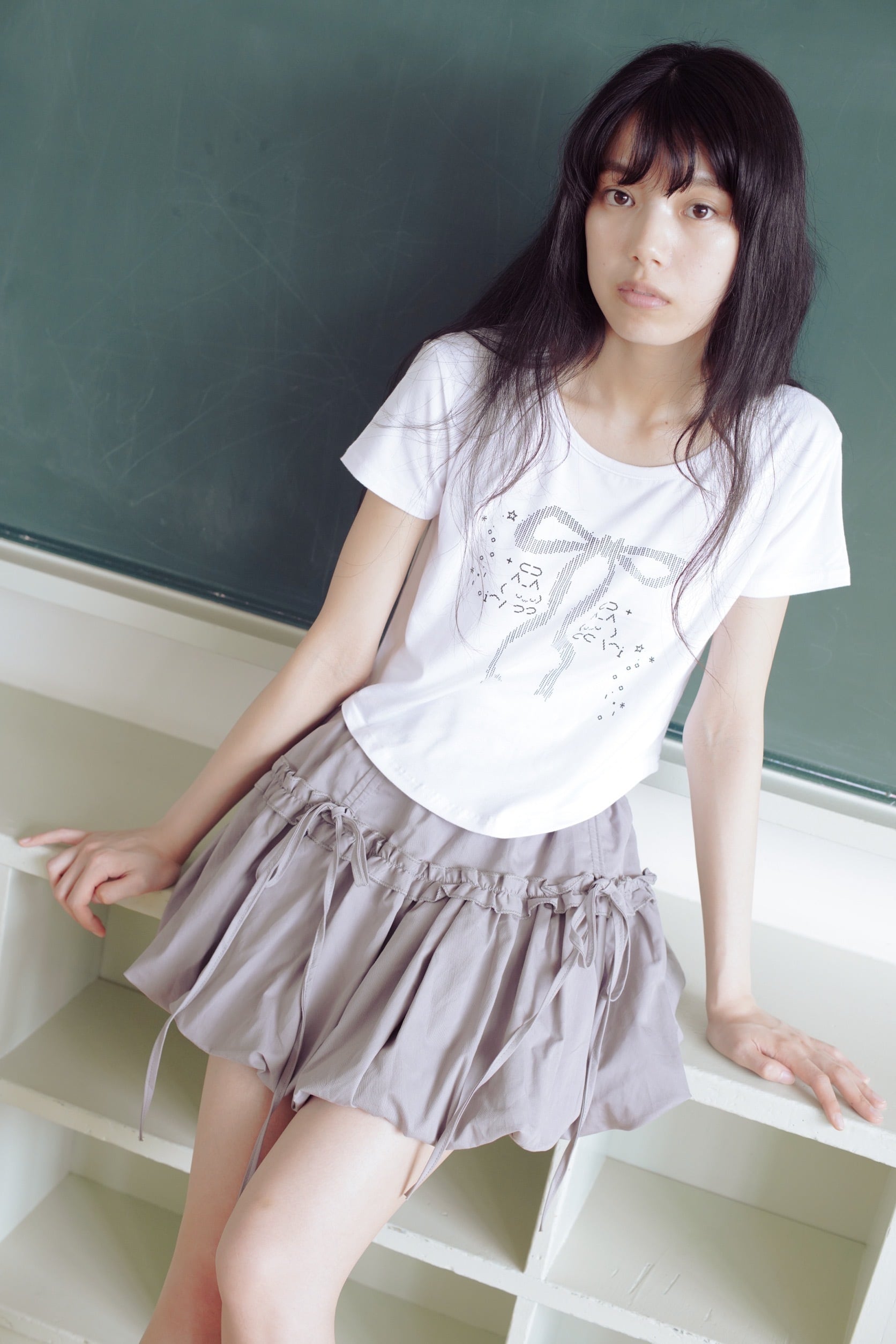 ふんわり広がるバルーンシルエットがコーデに動きをプラスし、施された細かいフリルがガーリーさを際立たせるミニスカート⟡.·