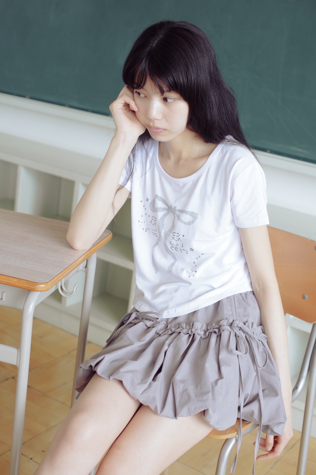 トップスはコンパクトなトップスと合わせるとバランスが良く、Tシャツなどと合わせてカジュアルに着るのがかわいいです✰︎