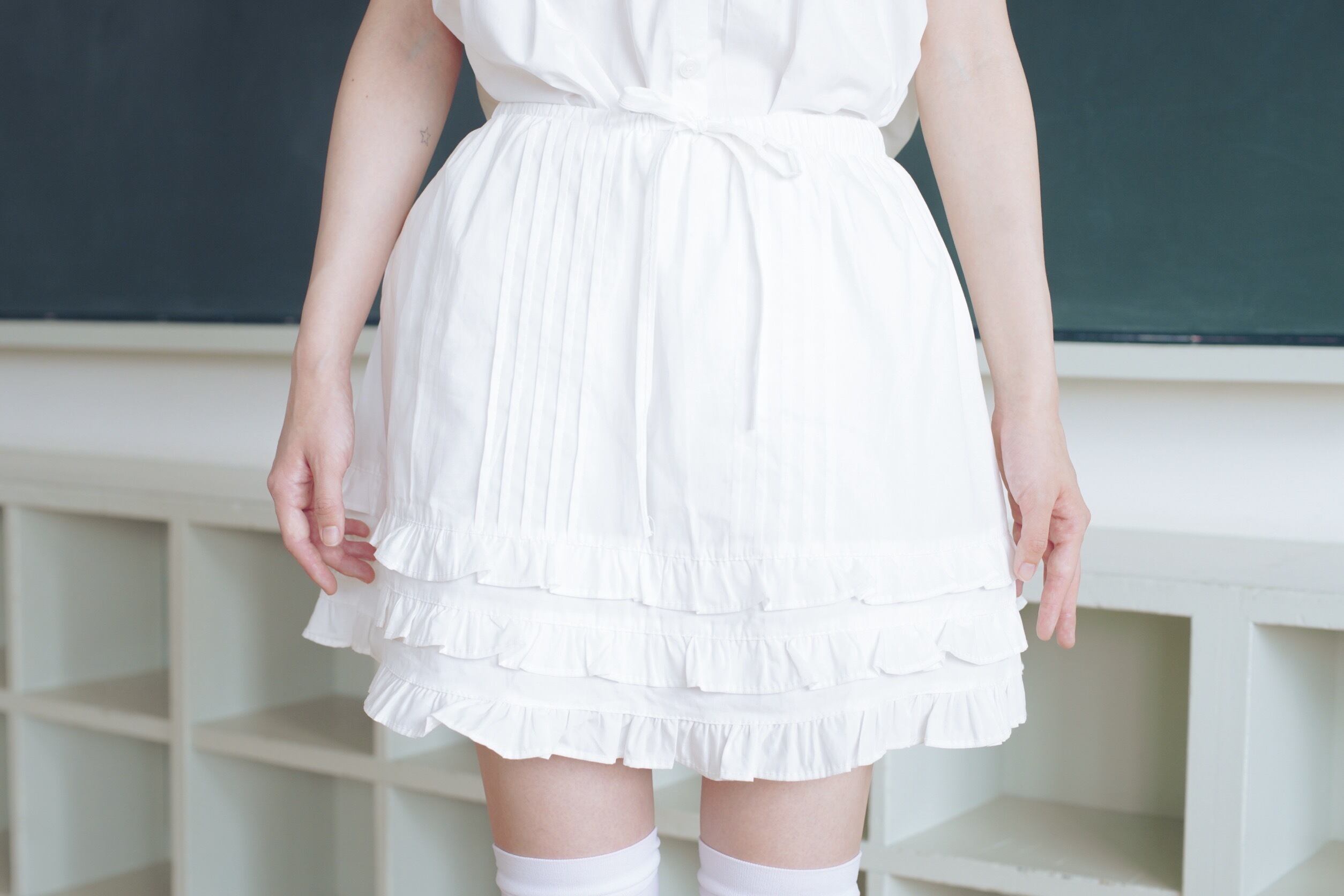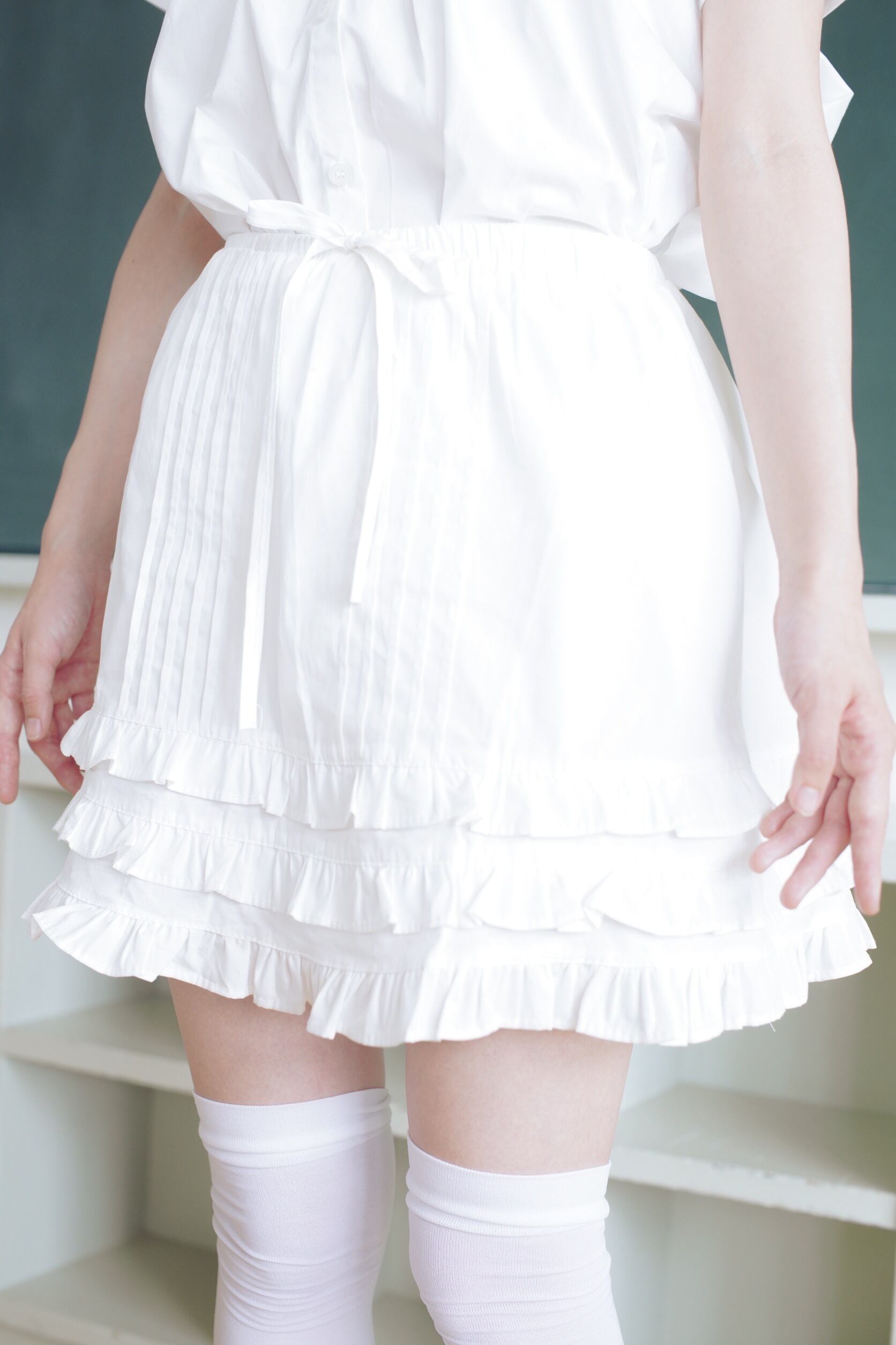 ボリュームたっぷりな3段のフリルが可愛らしさを引き立てるエプロンスカート ໒꒱·̩͙⋆
