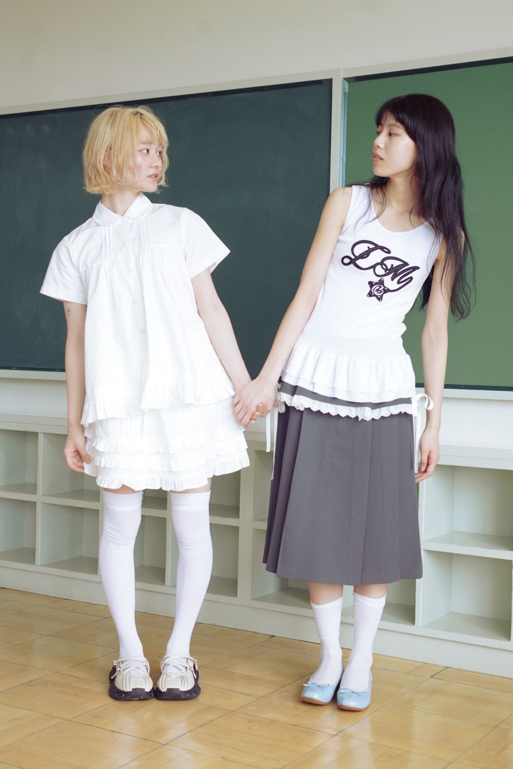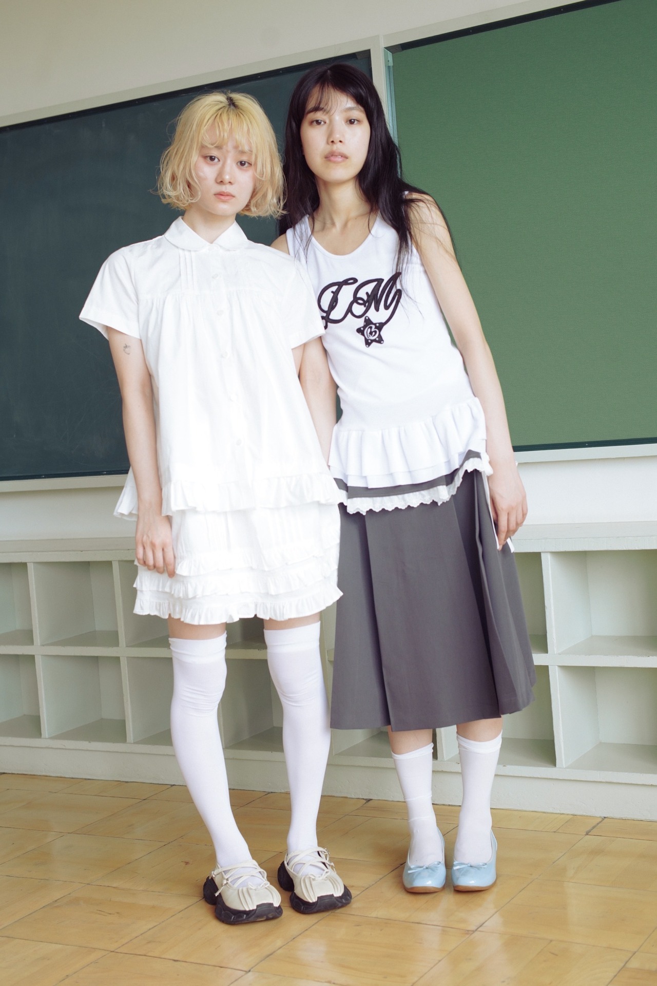 bigribbon frillshirtとセットで着るがおすすめで、ハイソックス合わせが今年らしいコーディネートに♩