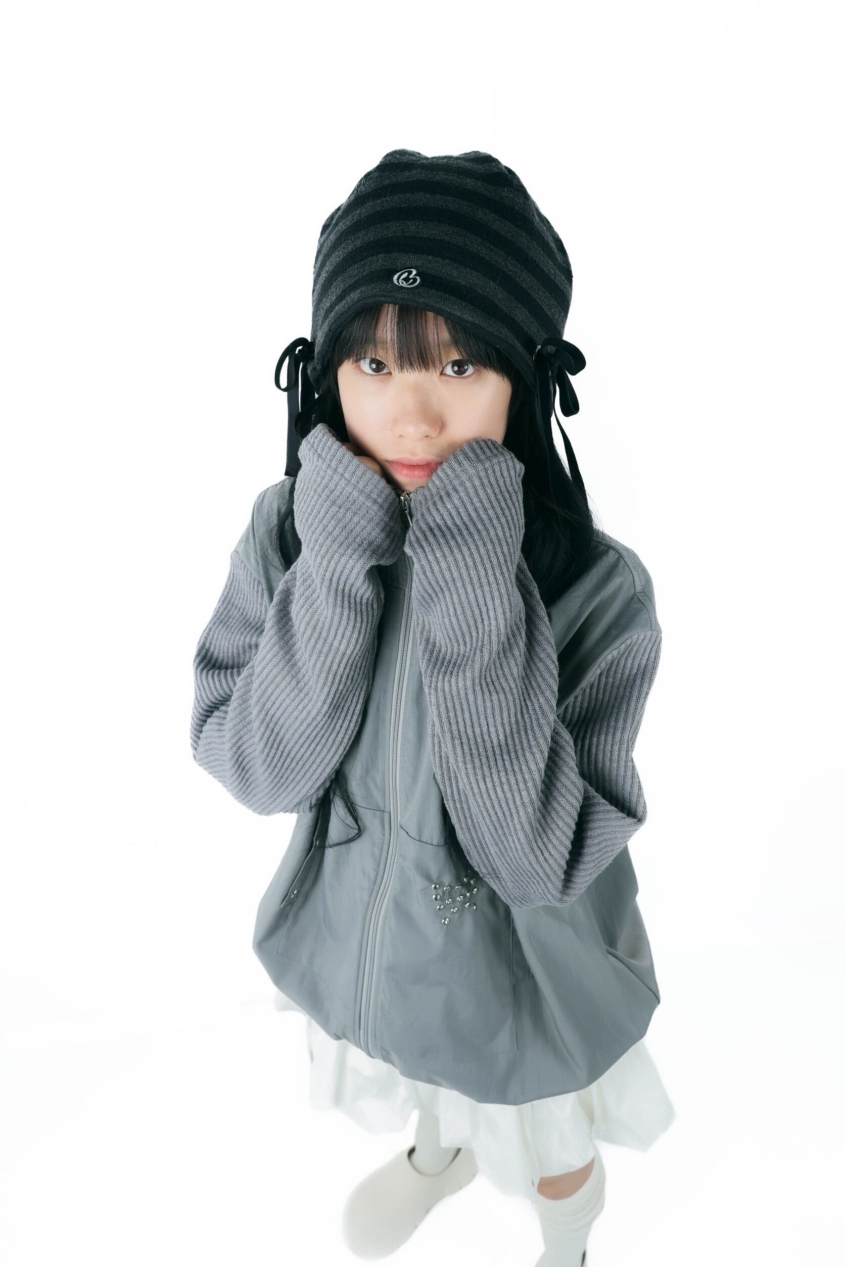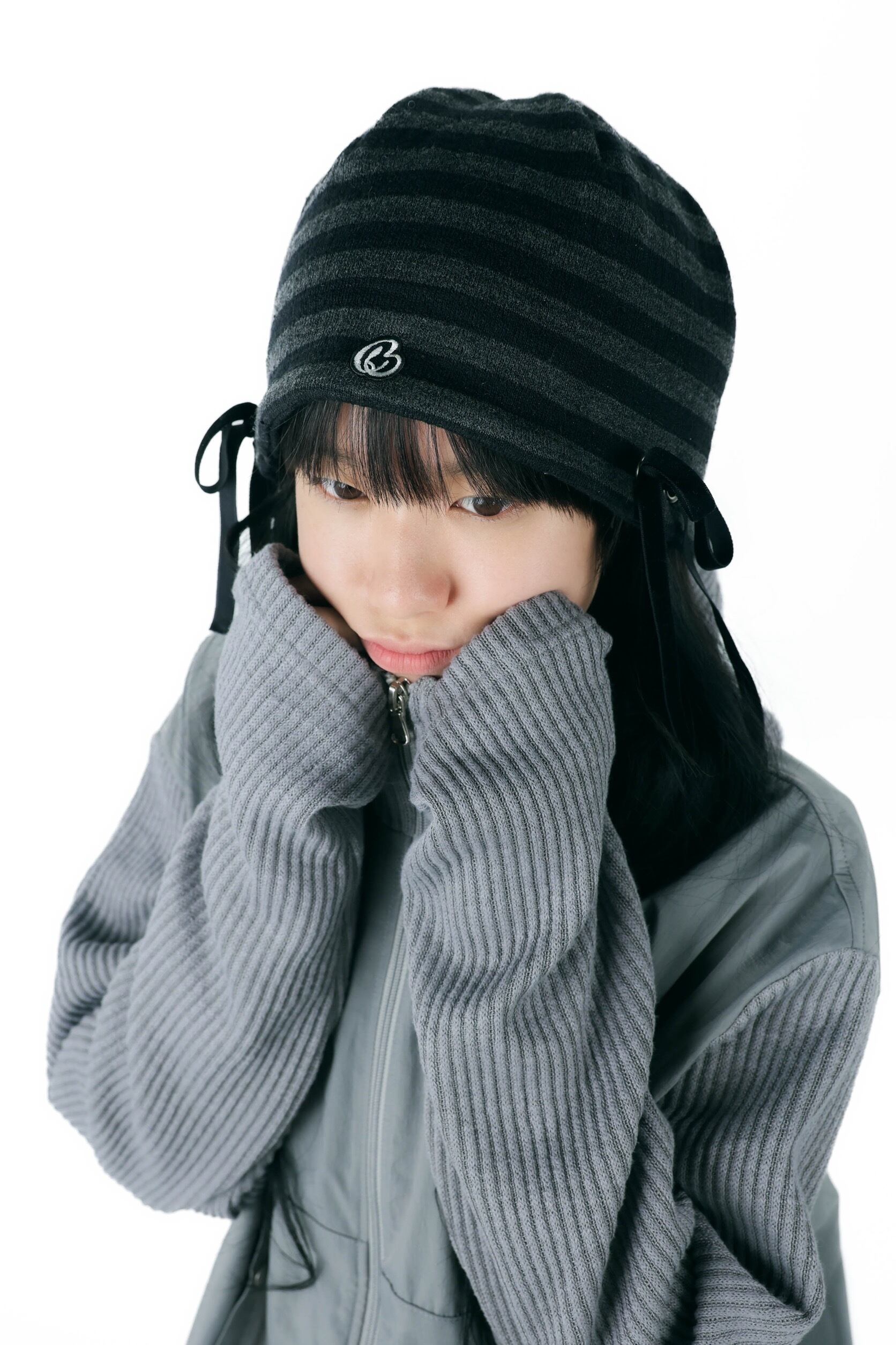 リボンディテールが目を惹くニットビーニー໒꒱