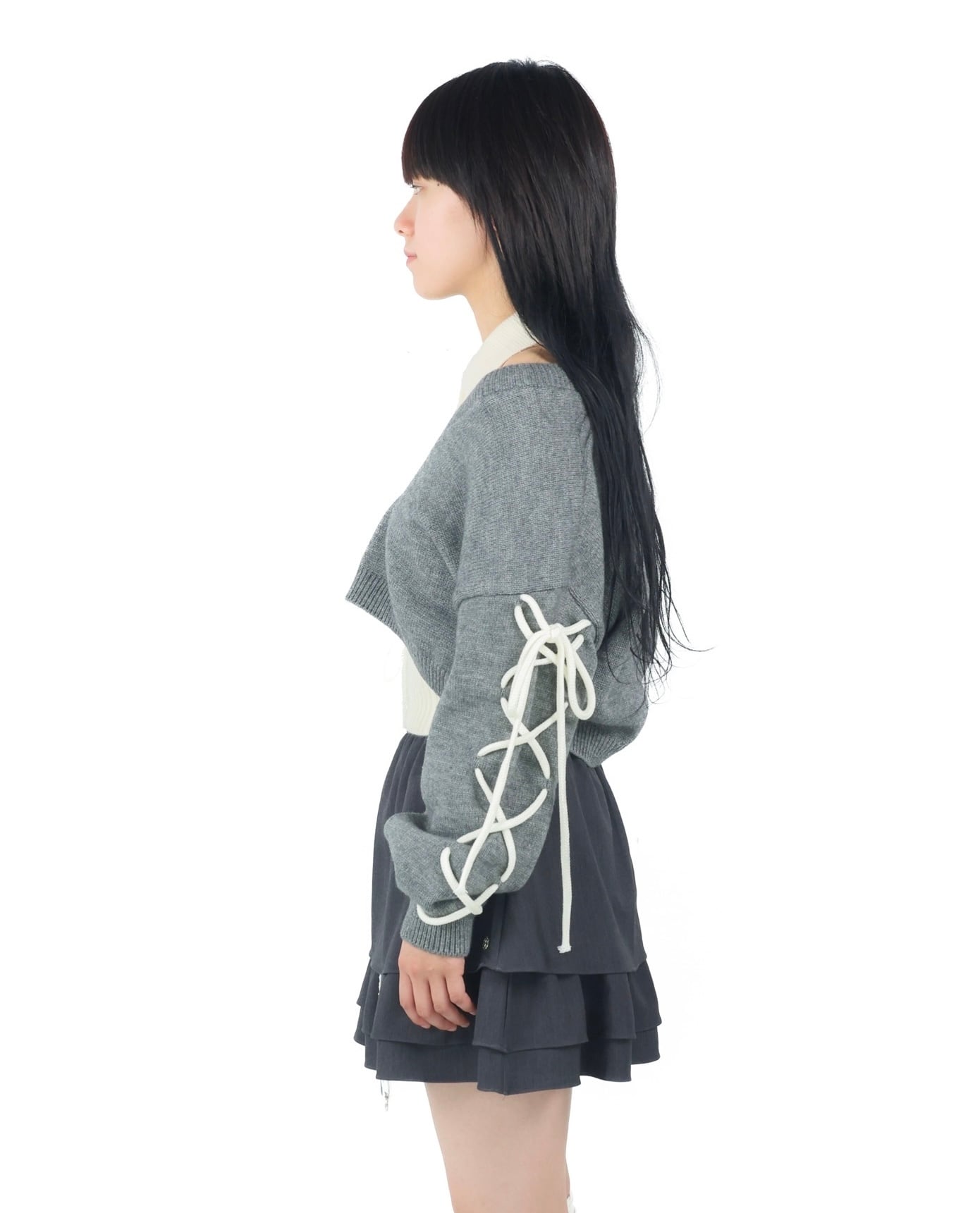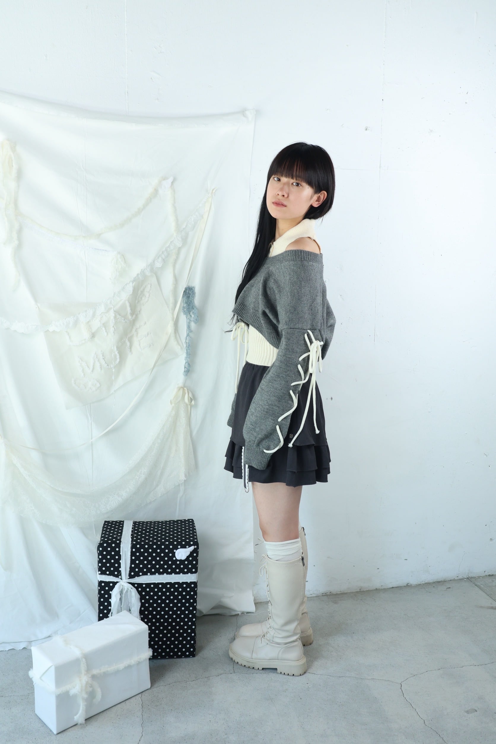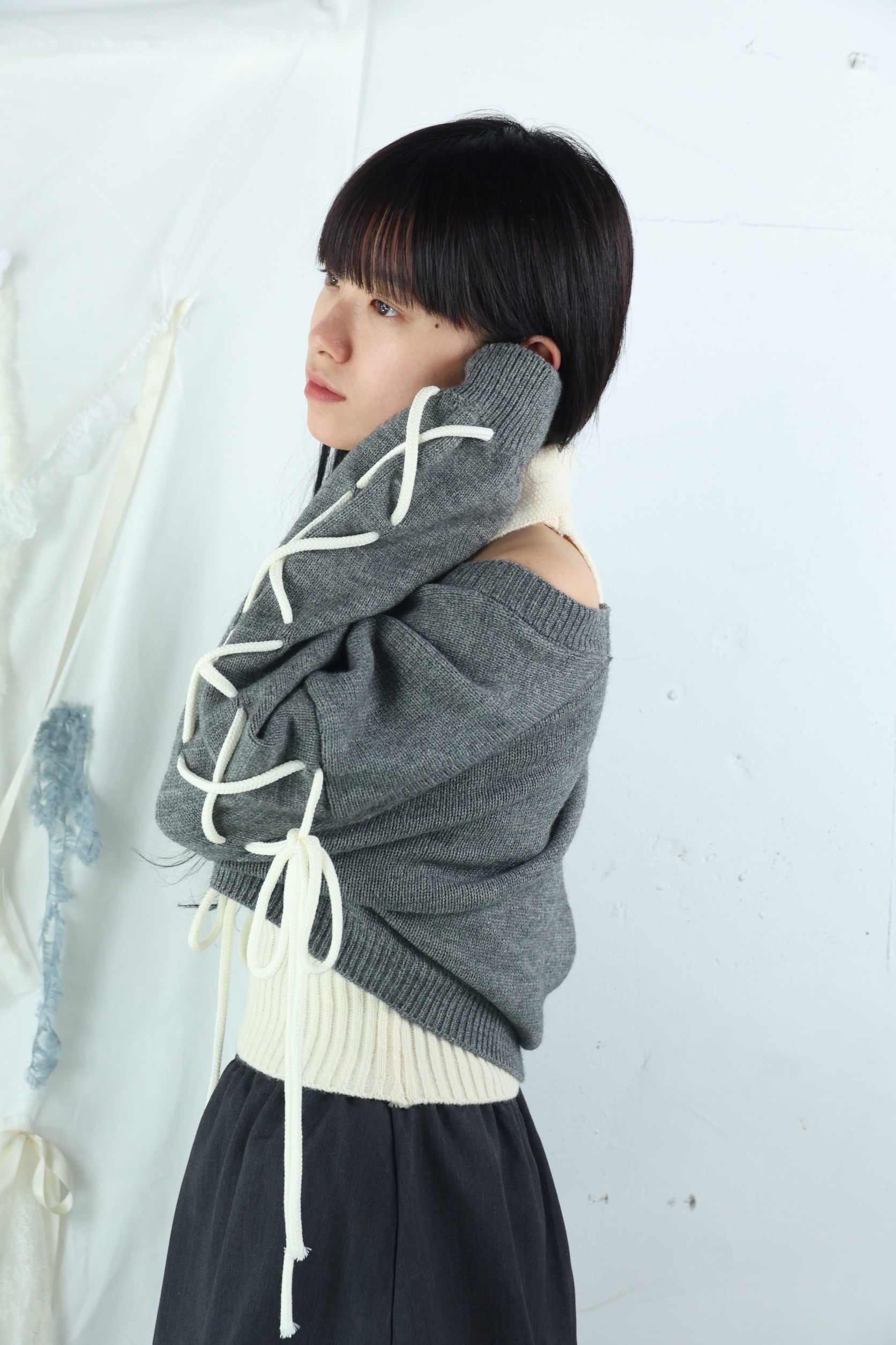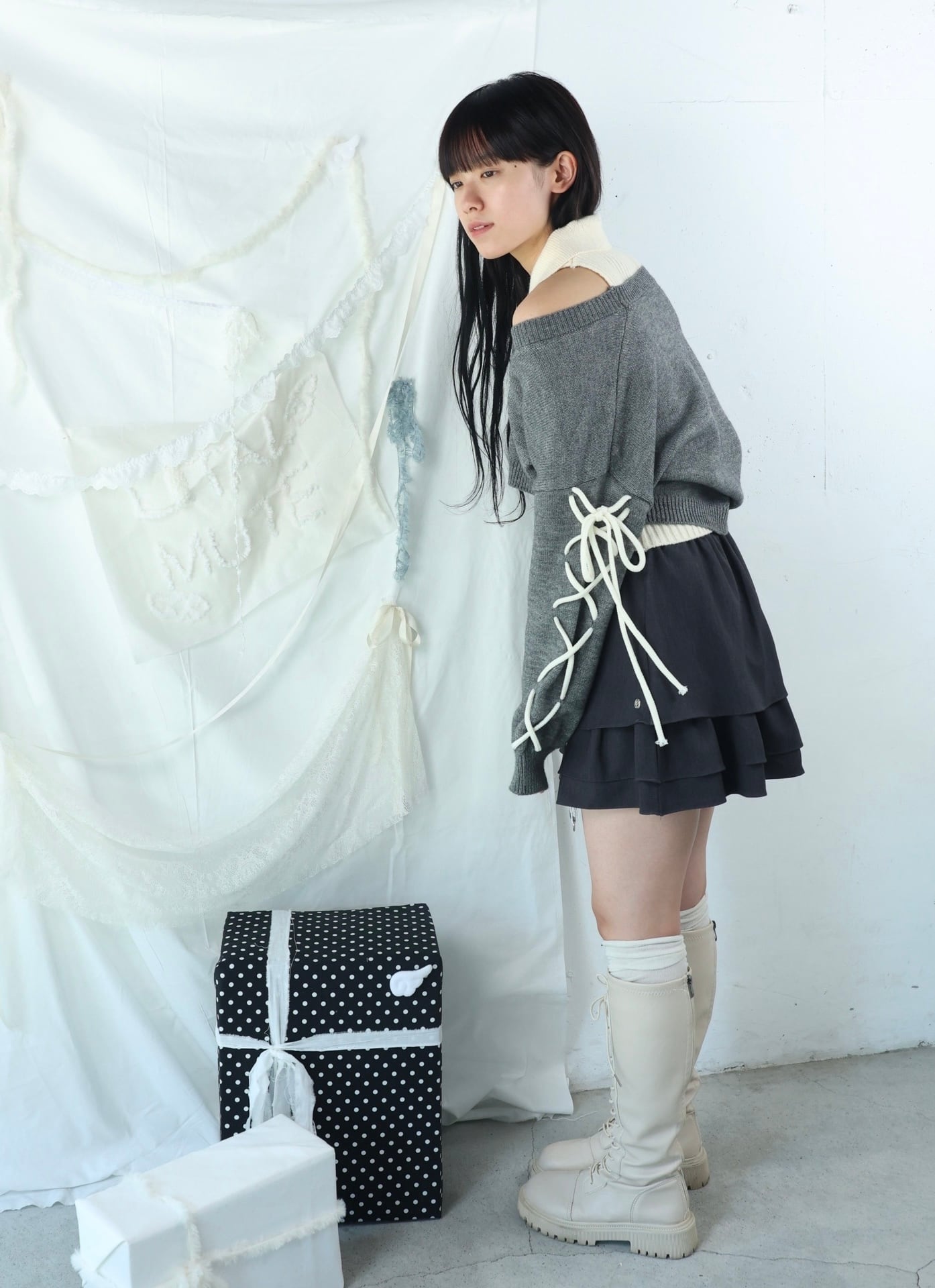 立体的に編み込まれた太めのレースアップが可愛いニットセットアップ⟡.·