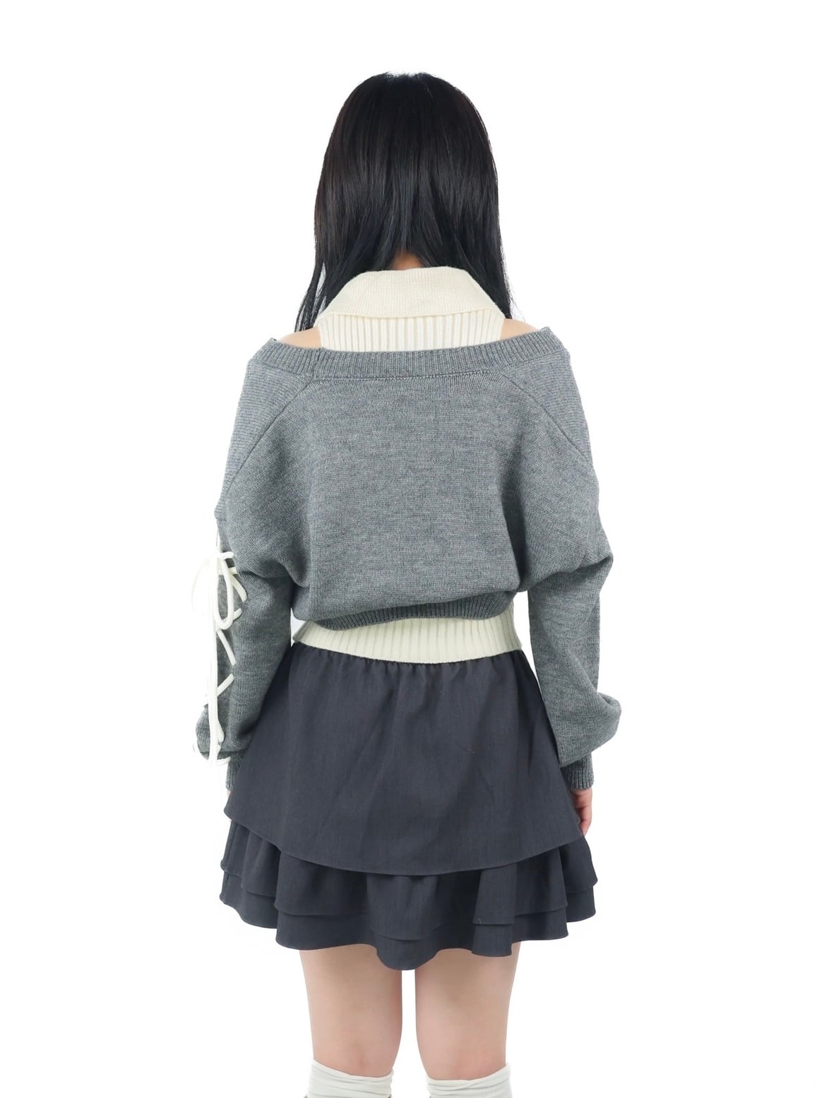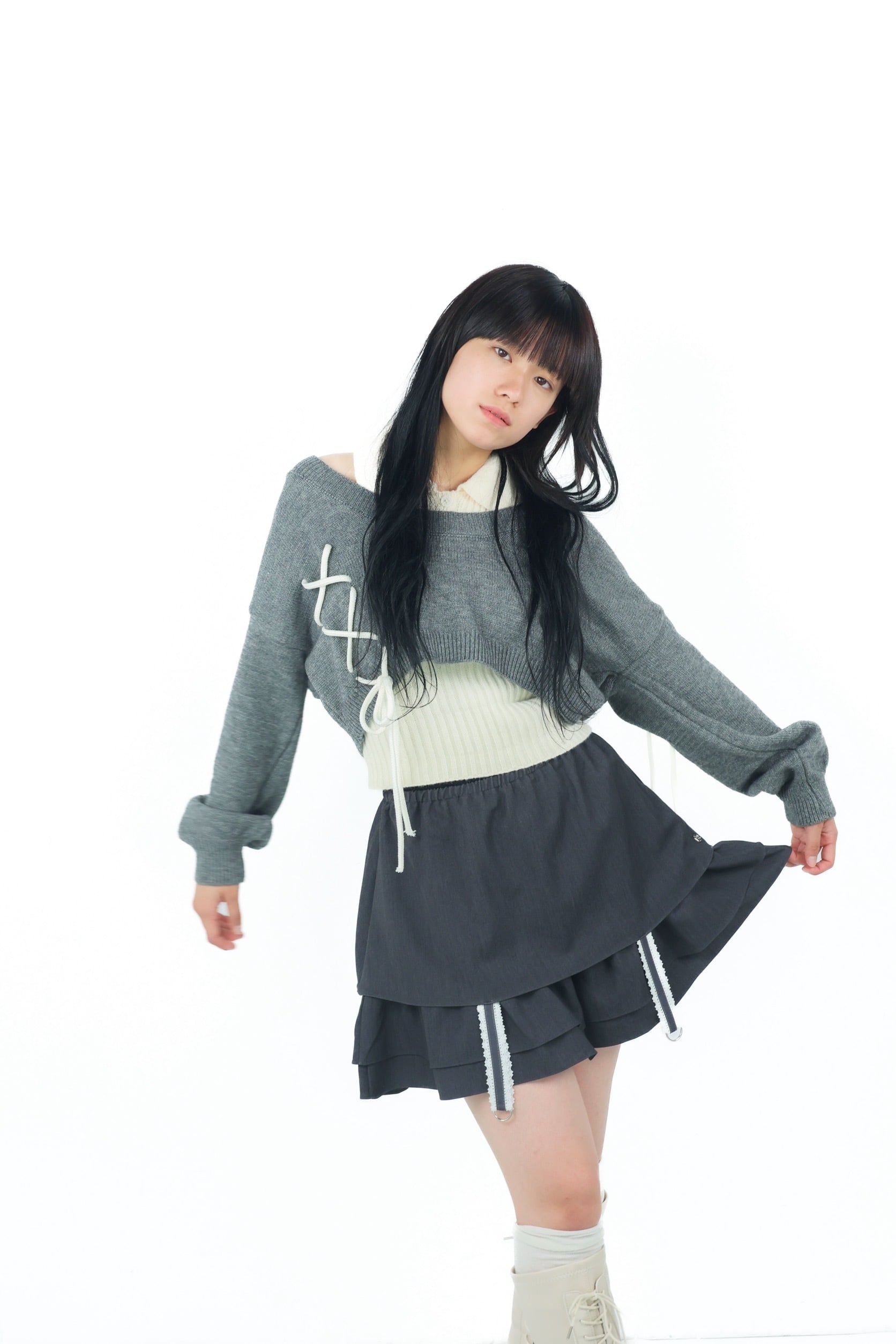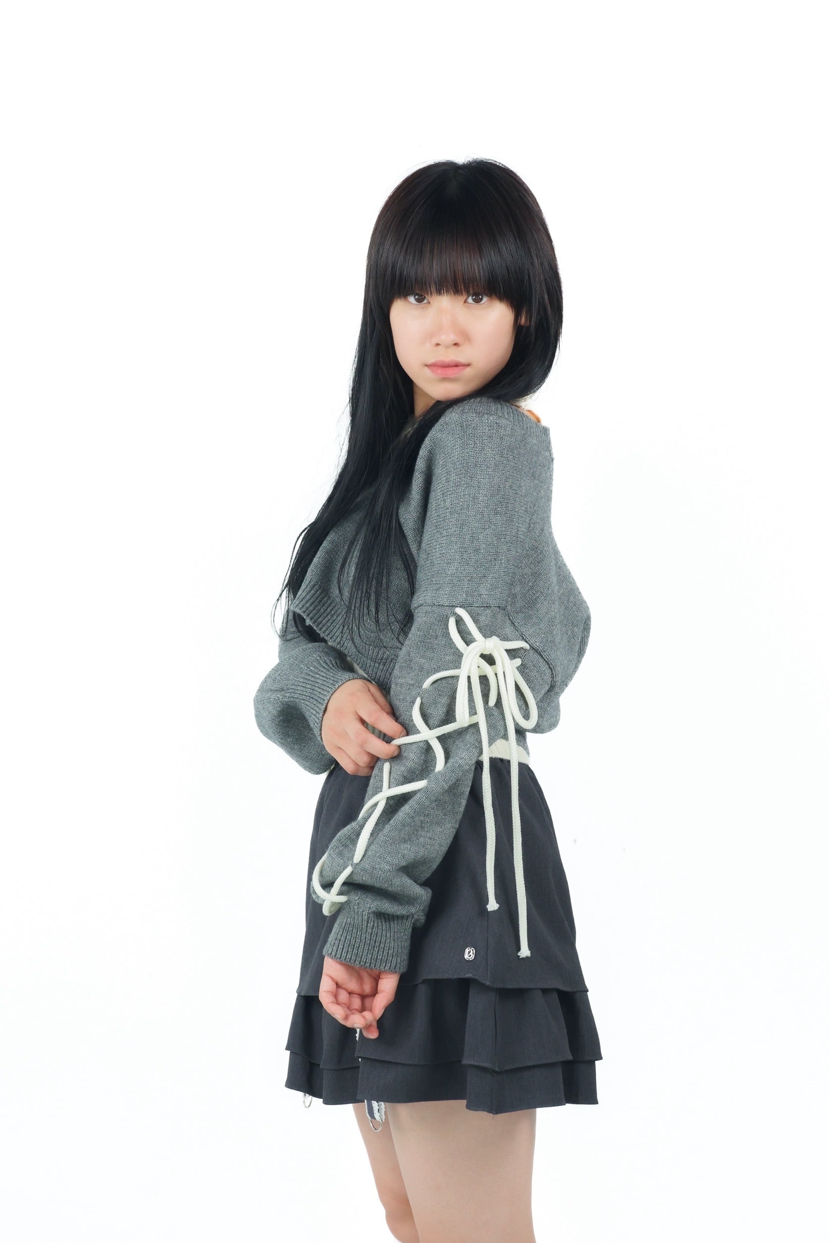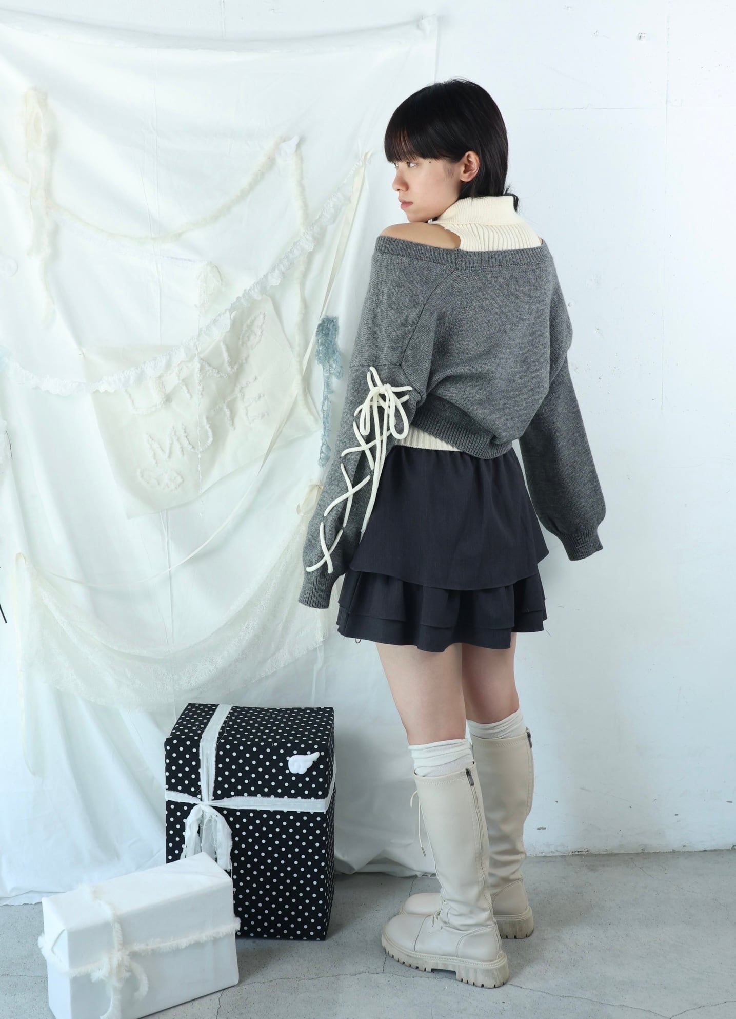 立体的に編み込まれた太めのレースアップが可愛いニットセットアップ⟡.·
