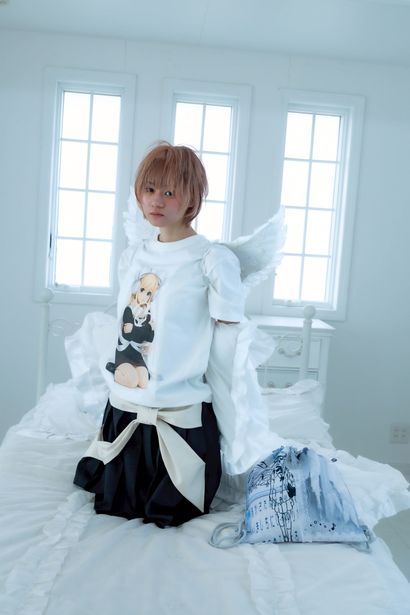 大きなリボンと羽のついたヘッドフォンが印象的で、LITALMUTEらしいエンジェルコアな世界観を表現。
