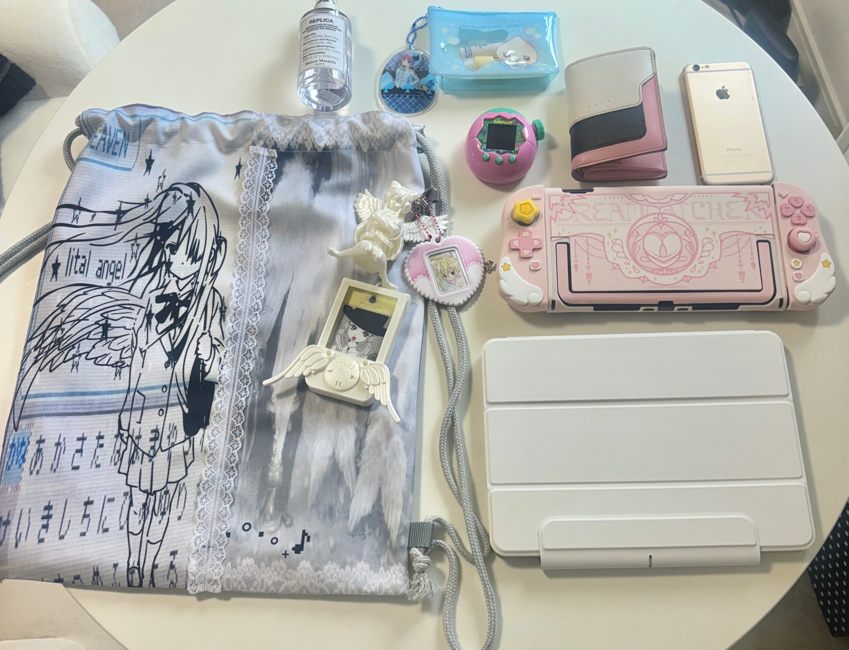 イラストと幻想的なグラフィックを組み合わせた存在感のあるレースナップサック‧₊˚. ⸝⸝